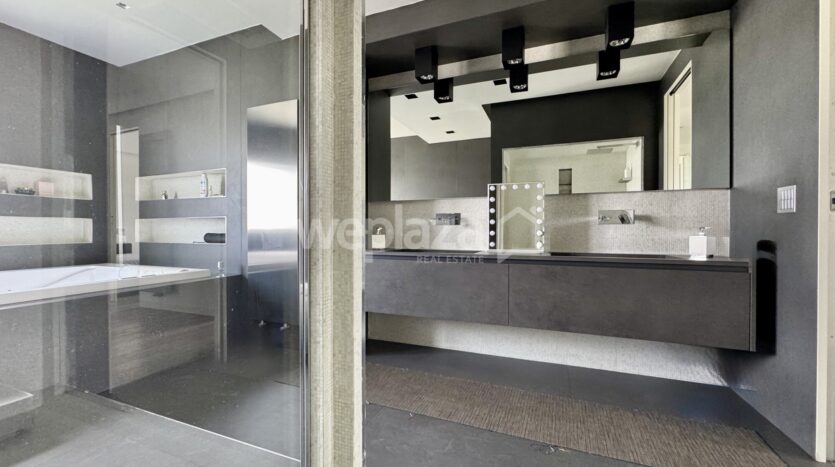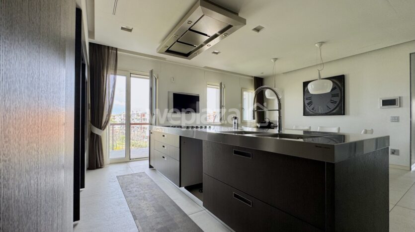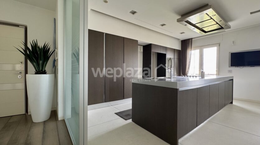 ingresso con guardaroba accogliente e funzionale, salone Confortevole e luminoso, separato dall’ampia cucina da una porta in vetro a tutta altezza, cucina abitabile moderna e spaziosa, con affaccio su un’ampia balconata, tre camere da letto, armadi a scomparsa lungo il corridoio.