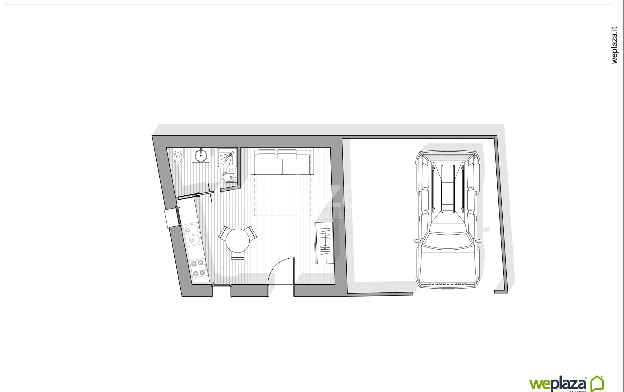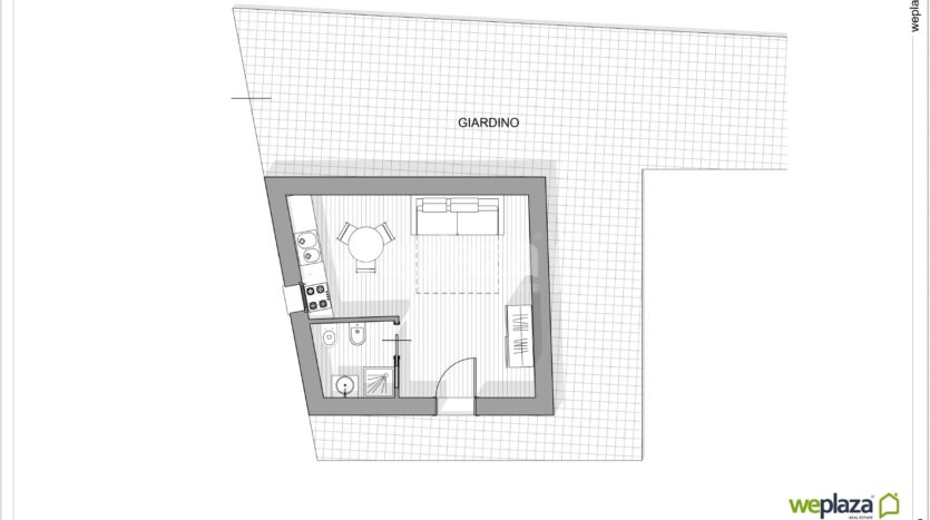 -– Appartamento al piano terra di circa 25 mq, con annesso spazio esterno di 30 mq, perfetto per creare una zona relax o uno spazio verde.