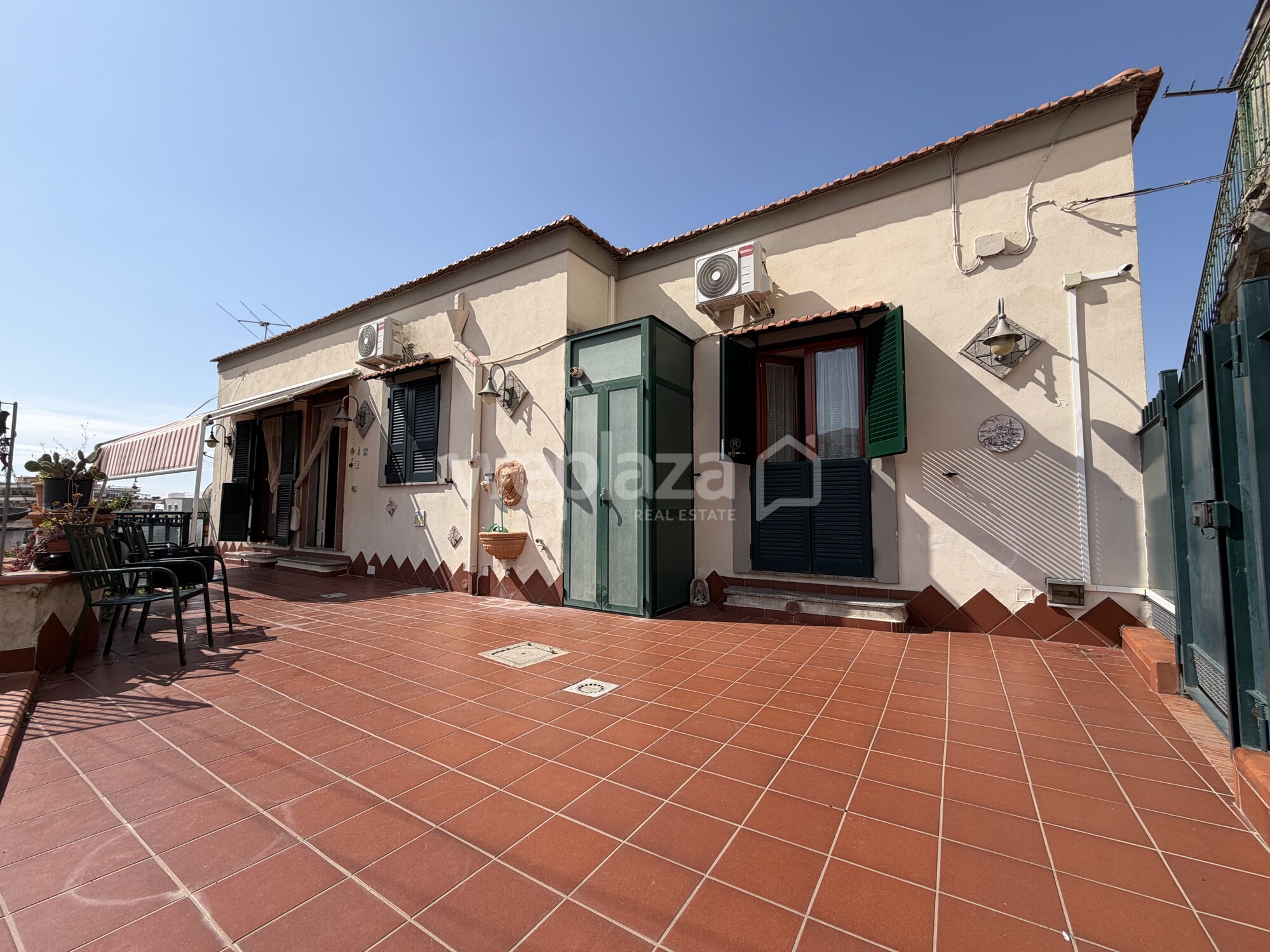 – Terrazzo a livello di circa 120 mq, uno spazio esterno ampio e vivibile, perfetto per momenti di relax, pranzi all’aperto o per creare una zona verde privata
